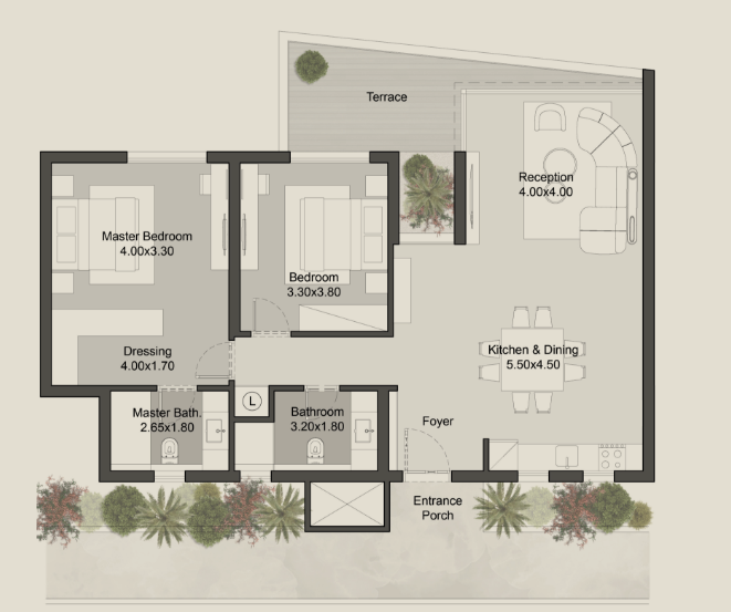 يقسم المشروع الى 20%مباني و 80% مساحات خضراء
