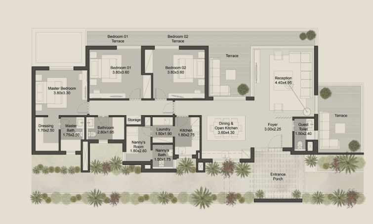 يقسم المشروع الى 20%مباني و 80% مساحات خضراء