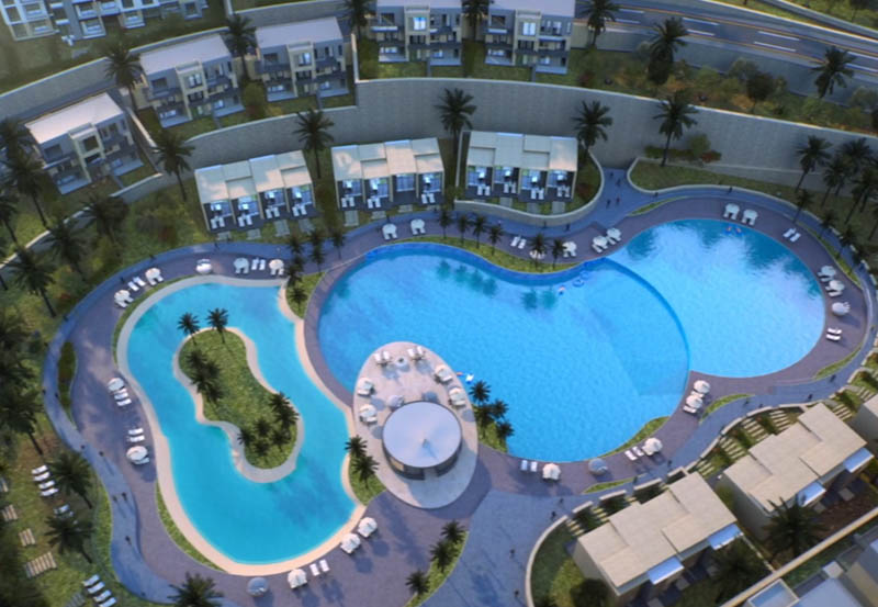 وتم تخصيص جزء من المساحة للوحدات السكنية مع التنوع في المساحات بين الدوبلكس والفيلات و التوين هاوس تطل مباشرةً على البحر، وتخصيص أغلبية المساحة للمساحات الخضراء والباقي للمباني والخدمات.