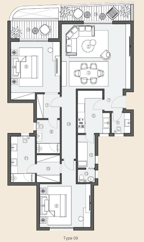 يقسم المشروع الى 20%مباني و 80% مساحات خضراء