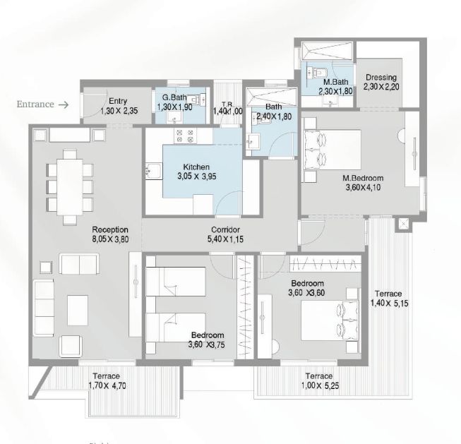 يقسم المشروع الى 20%مباني و 80% مساحات خضراء